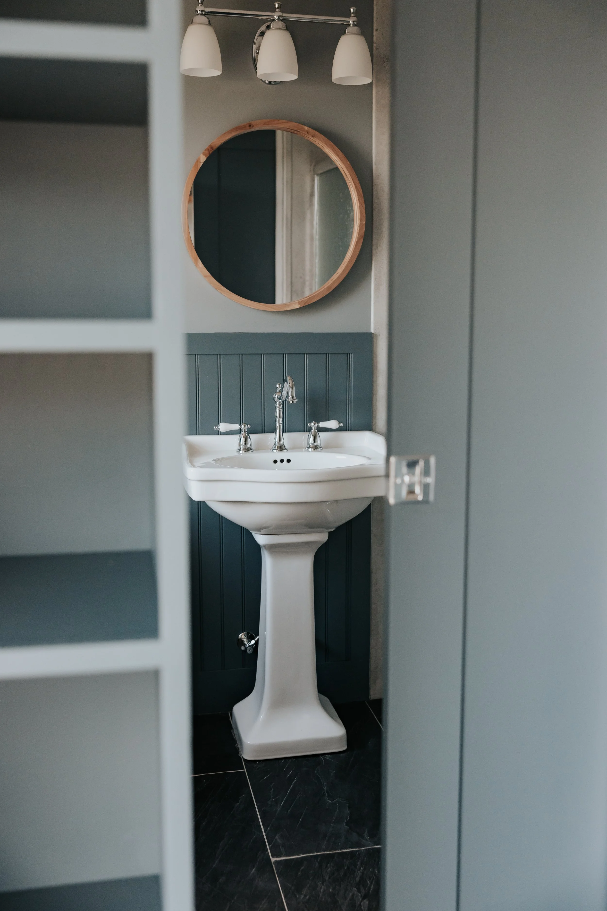Renovating a working farm in Canandaigua required a thoughtful approach to enhance both functionality and aesthetic appeal. The client sought to create more usable space while updating the adjoining bathroom, ensuring it reflected the charm of their farmhouse style. Incorporating chrome fixtures added a modern touch, while wainscoting provided a classic, rustic feel. Barnwood shelving complemented the overall design, creating a cohesive look that honored the farm's heritage and offered practical storage solutions. This renovation not only meets the client's needs but also preserves the character of their beloved farmhouse.
