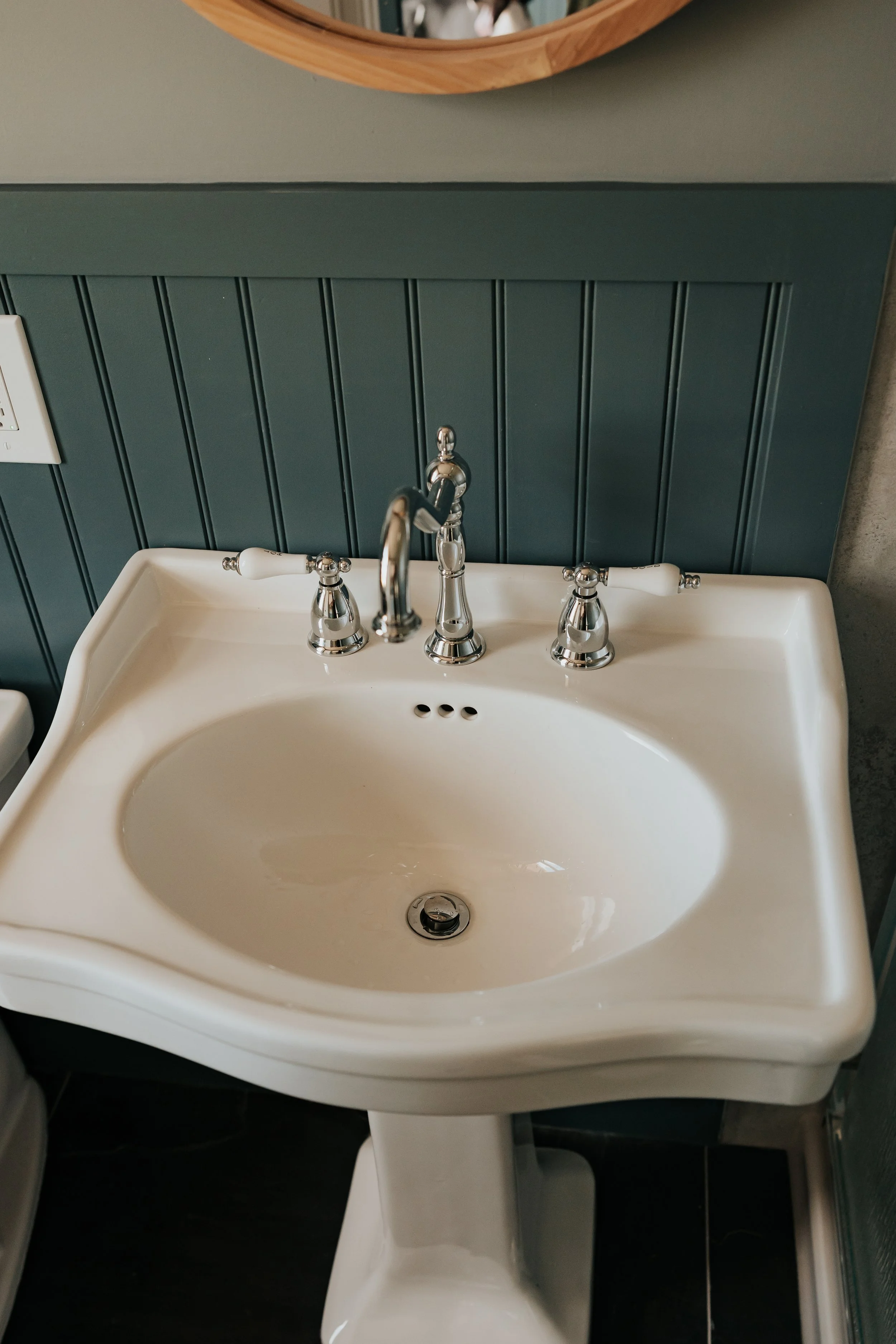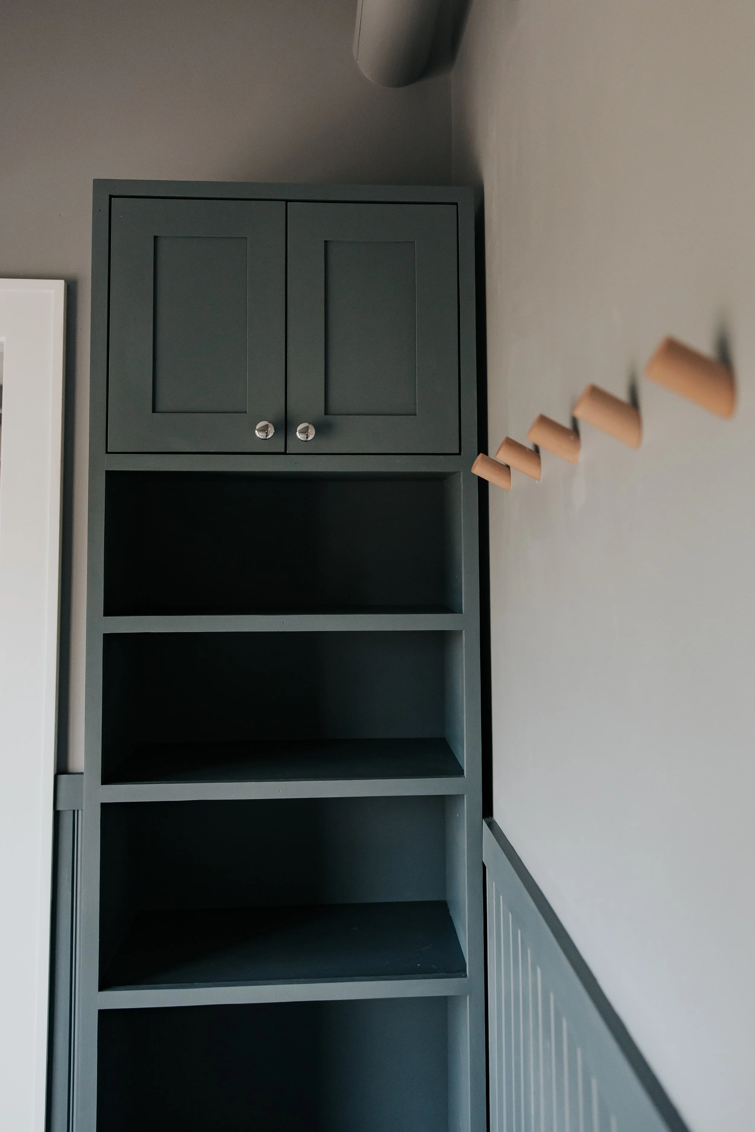 We used two shades of Sherwin Williams shades of slate blue: Cadet & Slate Tile and added the barn wood accents, paying homage to the fact that this is a working farm. It’s a perfect fit!